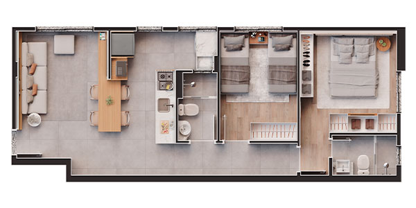 Há espaços projetados para diferentes momentos, como salão de festas com lounge externo, bicicletário, playground, espaço coworking e uma academia completa. Cada detalhe foi pensado para garantir praticidade e qualidade de vida, permitindo que os moradores aproveitem ao máximo tudo o que a cidade tem a oferecer.